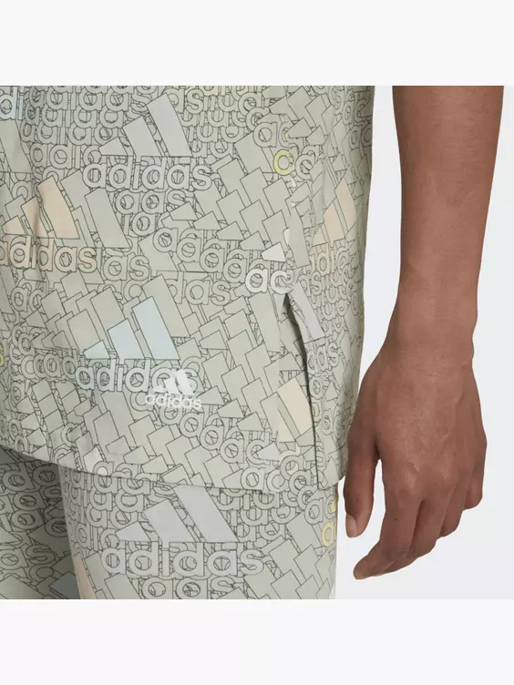 Dieses bunte adidas T-Shirt gibt dir ein Extra an Motivation. Ein kontrastierender Allover-Print aus adidas Logos bringt deine Liebe zum Sport unübersehbar zum Ausdruck. Kombiniert mit schlichten Farben oder auffälligen Mustern wird ein angesagter Look draus. Außerdem bietet dir die lockere, vielseitige Silhouette jede Menge Styling-Optionen.