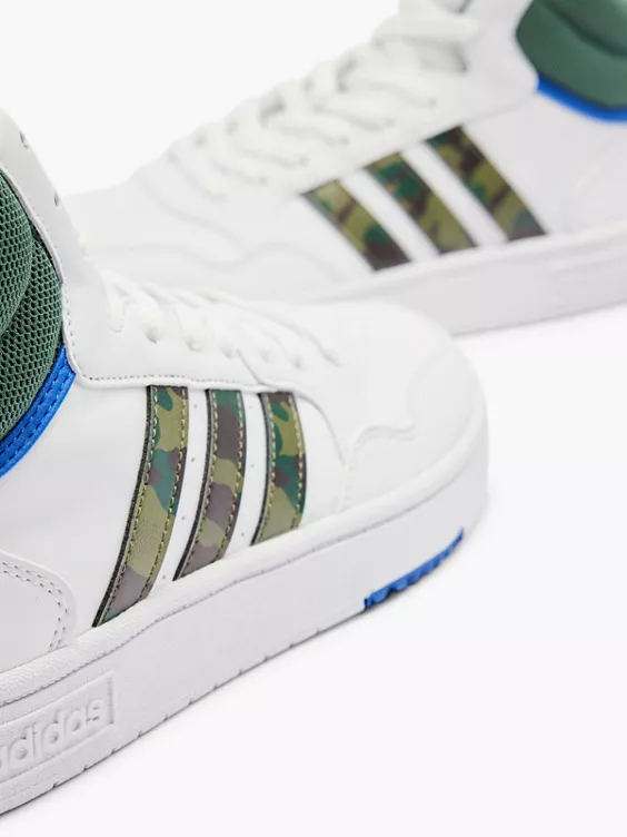 Dieser vielseitige adidas Mid-Cut-Sneaker ist von B-Ball-Styles inspiriert und punktet mit seinem sportlich-lässigen Look. Die robuste Gummiaußensohle und das Obermaterial aus Synthetikleder sind besonders strapazierfähig. Und die neu aufgelegten 3-Streifen in Camo-Optik machen das Design perfekt. Zu Cargohosen kombiniert, bringst du Outdoor-Vibe in dein Outfit und mit dunklen Jeans wirkt er eher klassisch.Das Produkt hat einen Recycling-Anteil, der aus Textilabfällen, Resten und Haushaltsabfällen hergestellt wird und damit eine bessere Ökobilanz hat als neu produzierte Materialien. 25 % der Obermaterial-Komponenten haben einen Recycling-Anteil von mindestens 50 %